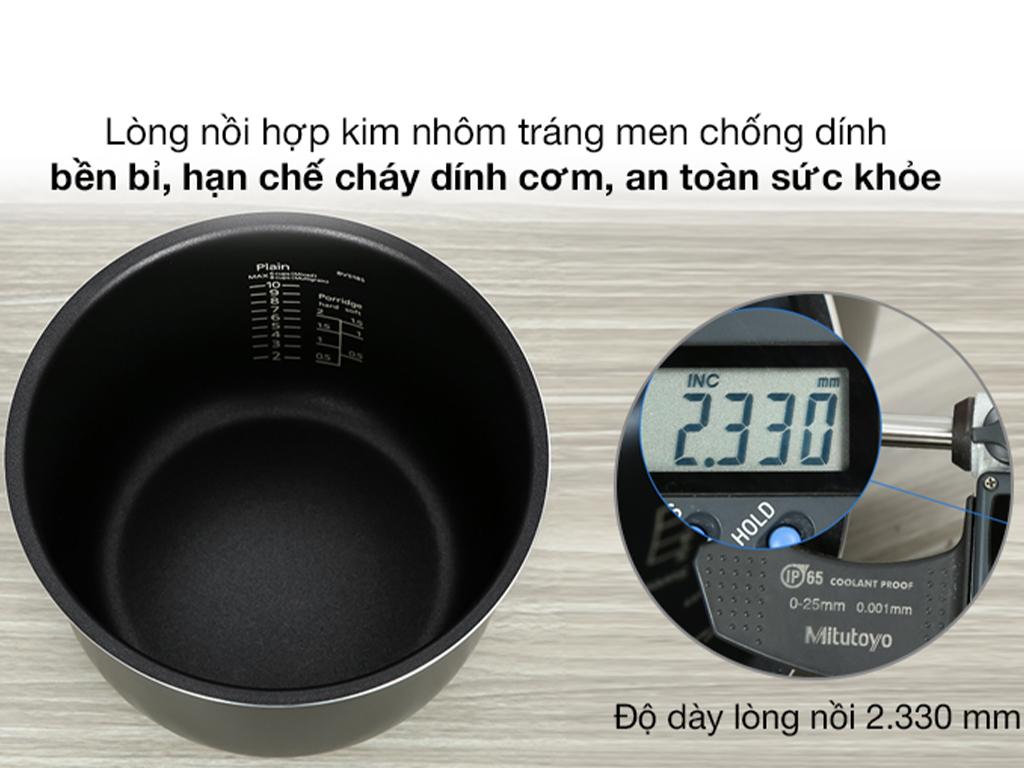 Lòng nồi cơm điện Tiger được làm bằng hợp kim tráng men chống dính bằng tia hồng ngoại có độ dày 2.330mm. Đây là chất liệu cao cấp, không gây độc hại và an toàn cho sức khỏe. Lớp men chống dính giúp việc nấu cơm và vệ sinh sau mỗi lần sử dụng trở nên dễ dàng hơn bao giờ hết.