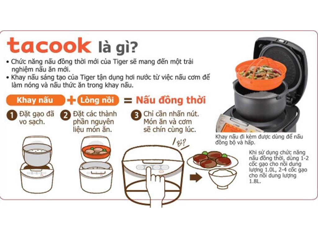 1.4. Trang bị tính năng “Tacook” công nghệ cao nấu cùng lúc 2 món tiện lợi