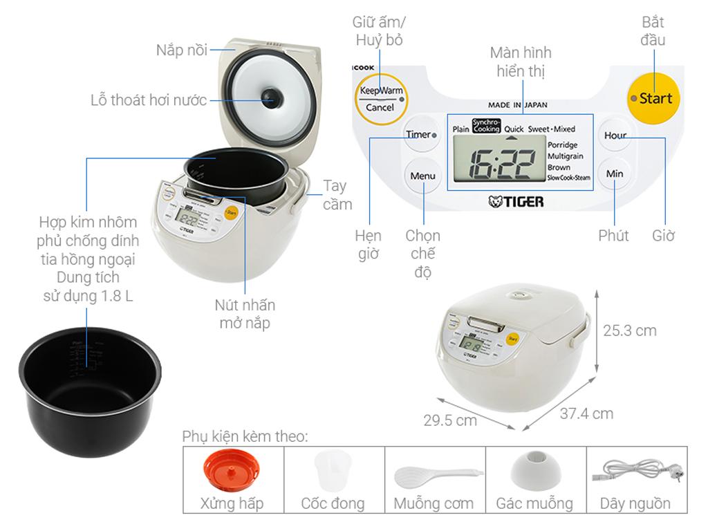 Cách sử dụng nồi cơm điện Tiger 1.8 lít JBV S18W hiệu suất nấu tốt nhất