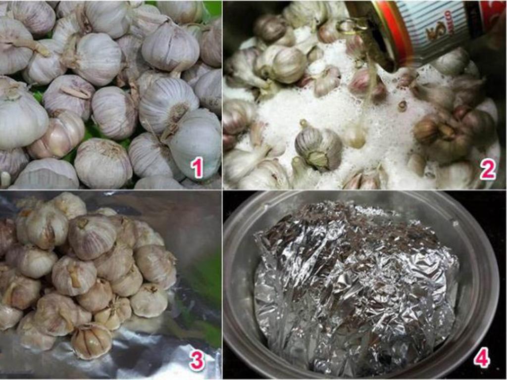Mẹo nhỏ: Bạn hãy ngâm tỏi trắng sau khi sơ chế với bia để kích thích quả trình lên men tỏi làm giảm thời gian cách làm tỏi đen bằng nồi cơm điện. Tỏi đen được ngâm trước với bia sẽ thơm ngon và ngọt hơn. (500gram tỏi với 1 lon bia ngâm khoảng 30 phút).
