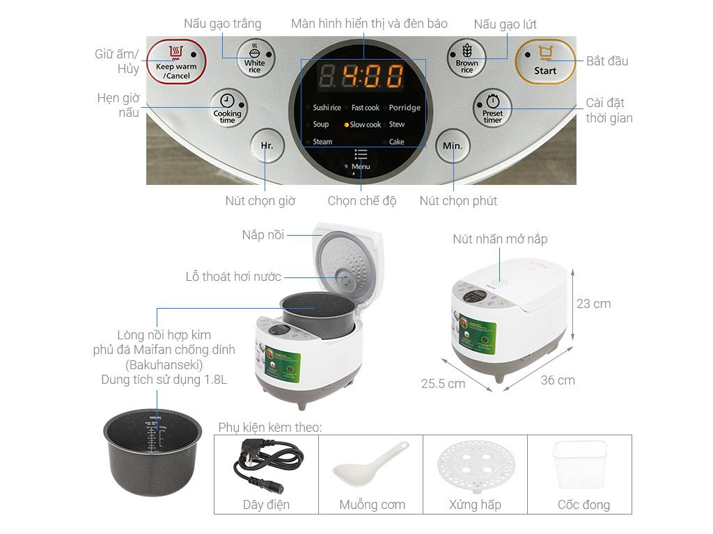 Giá nồi cơm điện Philips HD4515 1.8L chính hãng, bảo hành 1 ĐỔI 1 toàn quốc