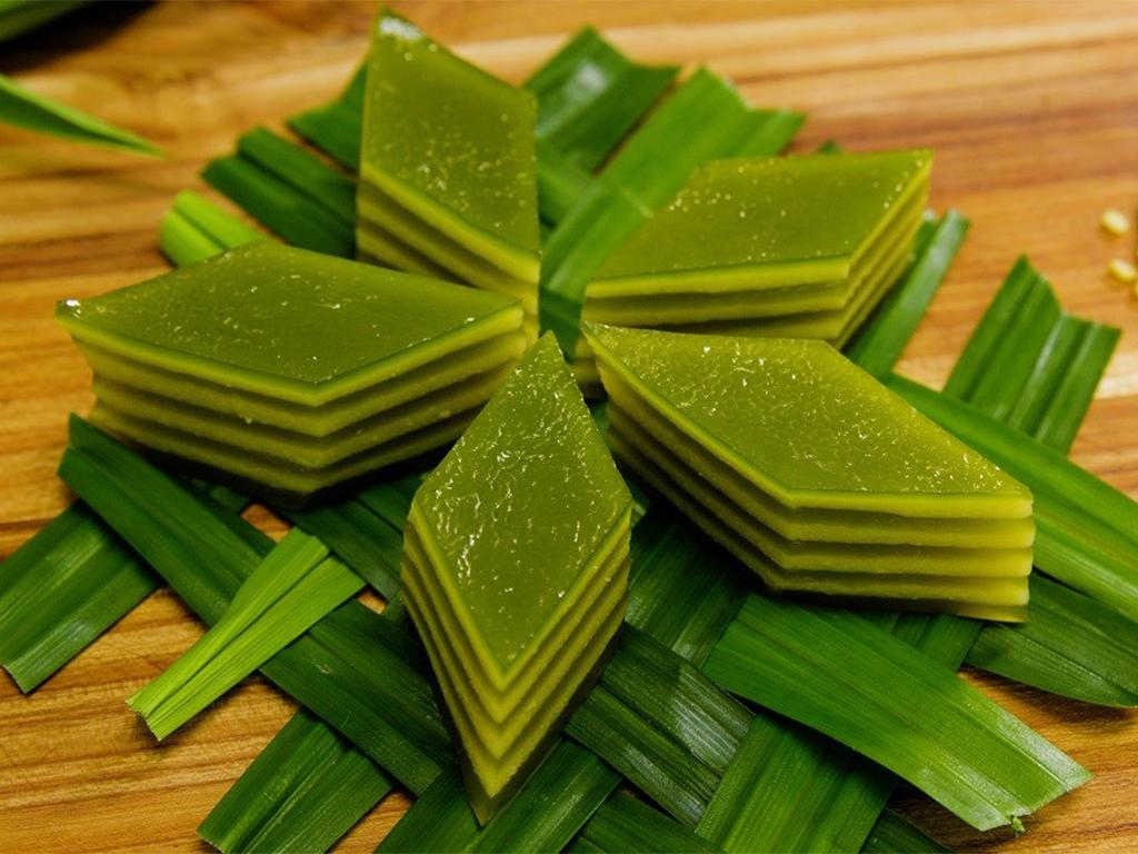 - Bạn có thể thay màu xanh của lá dứa bằng màu đỏ của gấc hay màu vàng của nghệ để cho bánh thêm phần hấp dẫn.