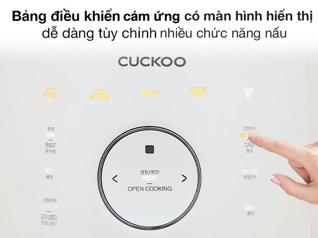 nồi cơm điện cao tần Cuckoo cũng được trang bị bảng điều khiển điện tử, có nhiều nút bấm và màn hình hiển thị. Thông thường, bạn sẽ nhận biết được nồi cơm điện cao tần bằng ký hiệu IH trên mặt nồi.