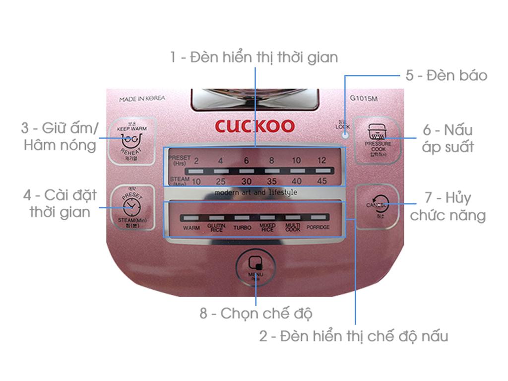 Nồi cơm điện Cuckoo CR 0631F - CRP G1015M do là bản xuất khẩu nên được trang bị bảng điều khiển tiếng Anh và tiếng Hàn. Điều nay vô tình gây khó hiểu cho người dùng Việt Nam. Dưới đây là bản dịch bảng điều khiển của hai phiên bản nồi này. Khi nắm được thông tin trên bảng điều khiển hướng dẫn sử dụng nồi cơm điện Cuckoo tiếng Hàn sẽ trở nên vô cùng dễ dàng.