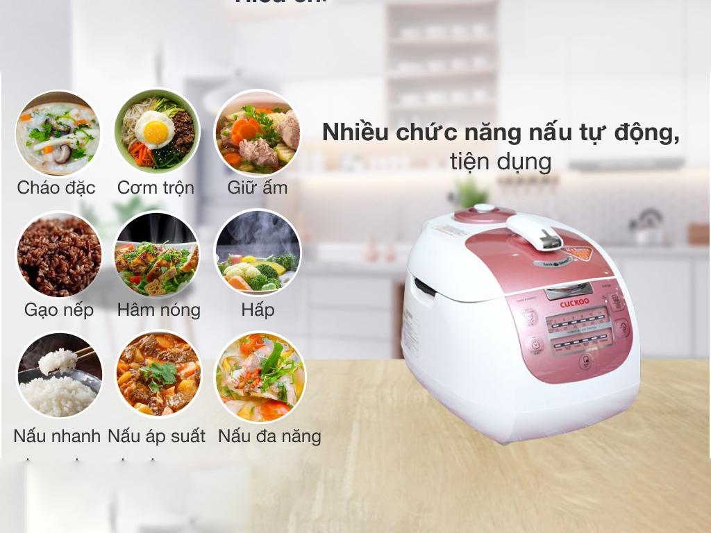 Trong khi đó, nồi cơm điện hàn quốc CRP G1015M ngoài được trang bị nhiều chức năng như trên còn thêm chức năng nấu nhanh giúp tiết kiệm thời gian nấu một cách tối đa.