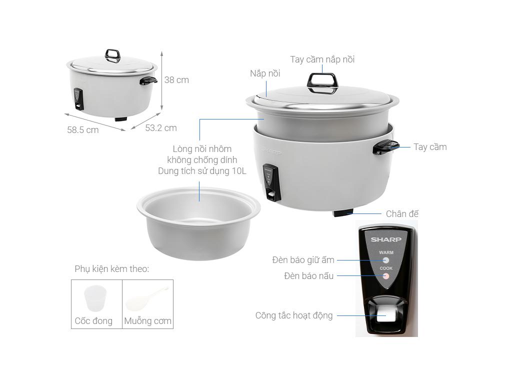Nồi cơm điện nắp rời công nghiệp Sharp KSH-D1010V | 10L | 3.290.000 |
