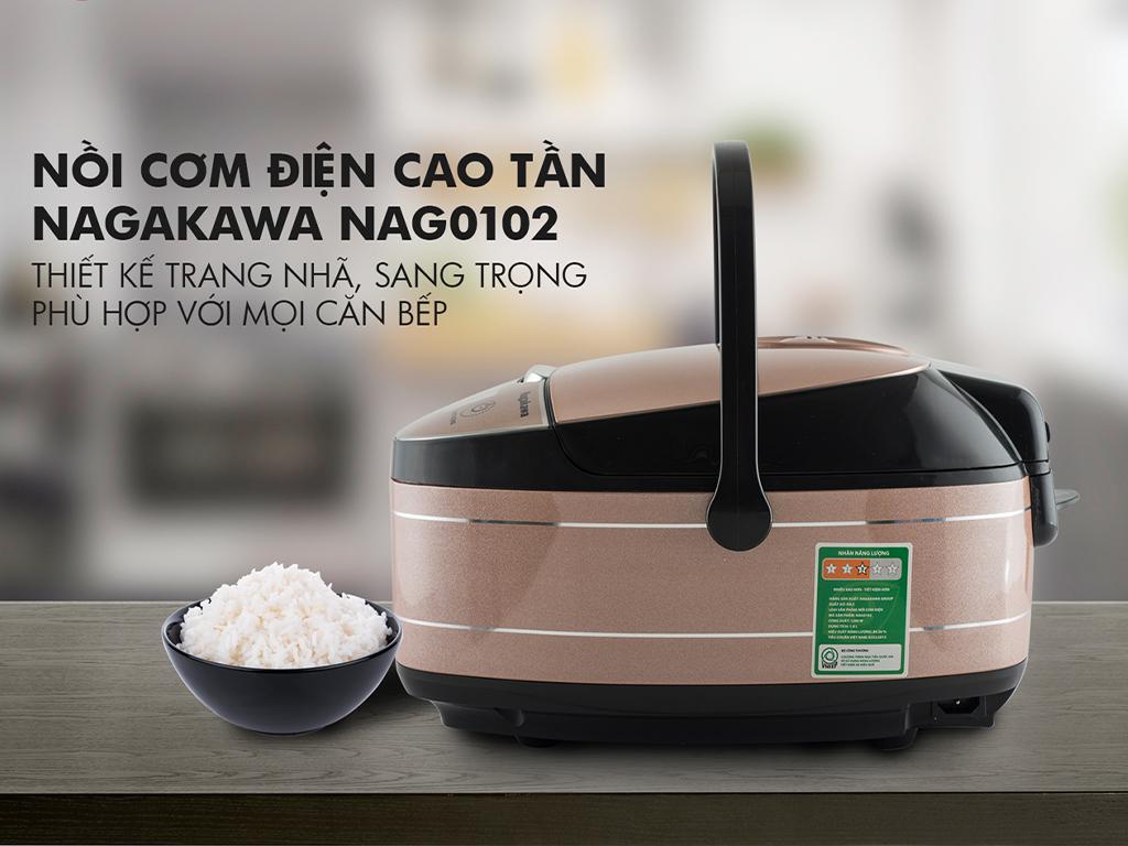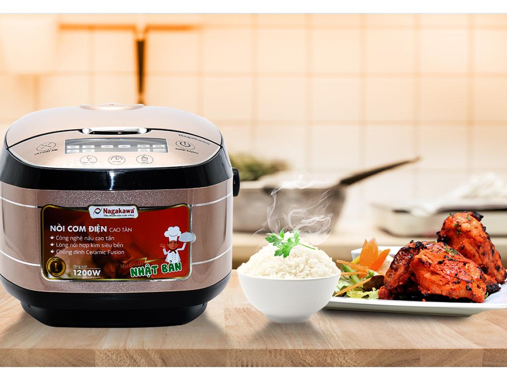 nồi cơm điện cao tần Nagakawa NAG0102 cũng có công suất 1200W, giúp cơm được nấu chín tận lõi hạt, bảo toàn hương vị và dưỡng chất. Dung tích nồi cũng là 1.8L, đáp ứng nhu cầu bữa cơm của 4-6 người.