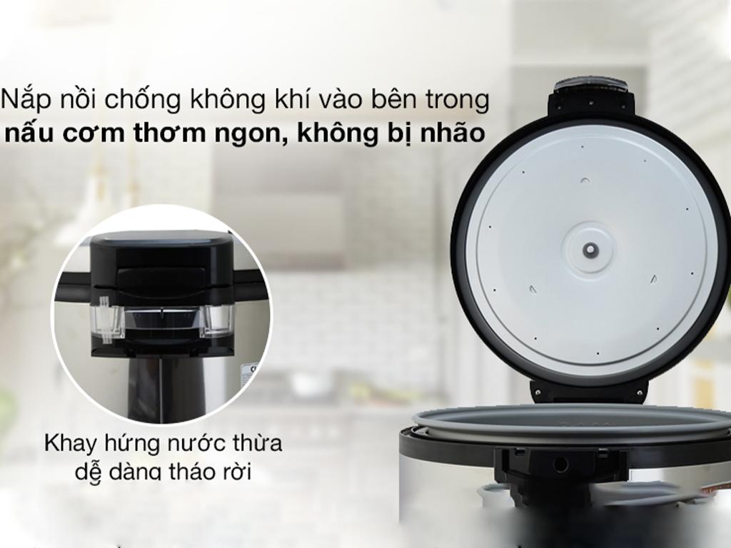 Thiết kế nắp nồi thông minh là điểm nổi bật của nồi cơm điện thông minh công nghiệp Cuckoo CR-3521/BKSTVNCV. Thay vì thiết kế đơn giản như trên các nồi cơm khác thì CR-3521 lựa chọn thiết kế nắp nồi chống không khí tràn vào giúp cơm chín kỹ hơn nhưng không hề bị nhão. Thêm vào đó thiết kế nắp nồi này còn giúp công việc vệ sinh rất dễ dàng.