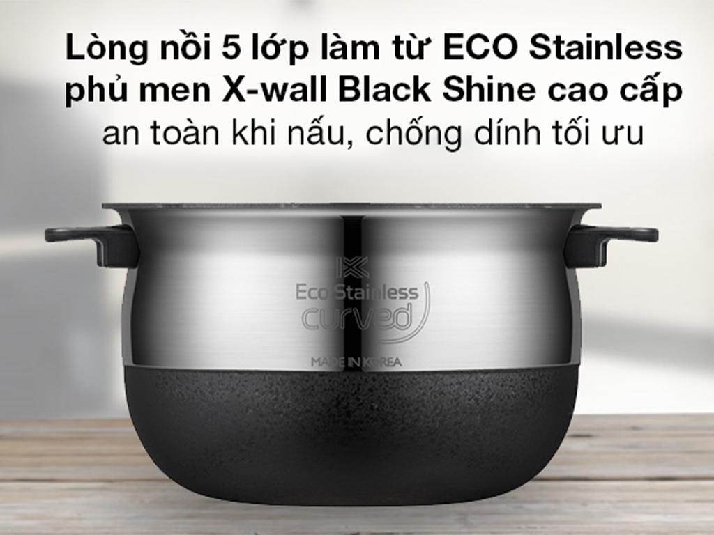 Đi kèm với công nghệ nấu cao tần hiện đại, thiết kế nồi cơm điện cao tần có lòng nồi chống dính cao cấp, nồi cơm điện cao tần Cuckoo CRP-LHTR0609F sử dụng lớp phủ men X-Wall Black cao cấp độc quyền của Cuckoo, chống dính tuyệt đối với bất kỳ nguyên liệu nào được sử dụng, đồng thời chịu được nhiệt và áp suất cực cao. Lòng nồi 5 lớp dày 2.6mm làm từ ECO Stainless chống dính cao cấp giúp dễ dàng vệ sinh và bảo quản, không bị bám cặn hay mùi.