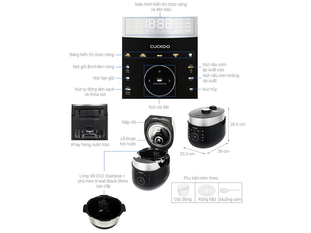 Nồi cơm điện Cuckoo cao tần áp suất kép 1.08 lít CRP-LHTR0609F chính hãng 100%