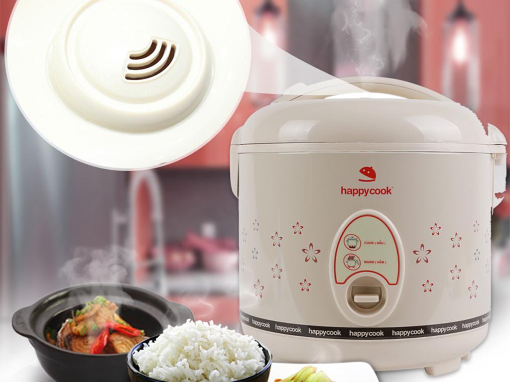 - Nồi cơm điện Happy Cook HC-180 sử dụng công nghệ nấu cơm 3D, tỏa nhiệt từ 3 hướng tương tự như nồi cơm điện sunhouse, trong khi nồi cơm điện Midea sử dụng công nghệ nấu cơm thông thường, tỏa nhiệt từ mâm nhiệt nồi cơm điện.