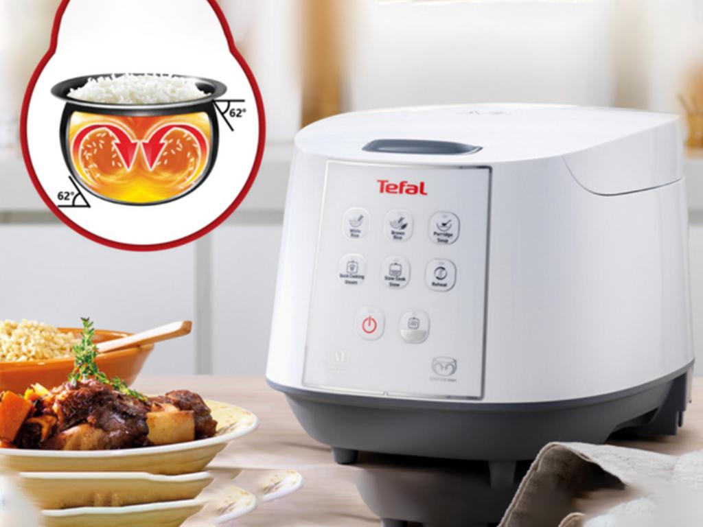 Nồi cơm điện Tefal có nhiều chế độ nấu nướng như nấu cháo bằng nồi cơm điện, hấp, làm sữa chua bằng nồi cơm điện, nấu mì, v.v. Nồi cũng có khả năng giữ ấm lên đến 24 tiếng, cơm lúc nào cũng được ấm nóng giúp người dùng ăn ngon miệng và tốt cho dạ dày.