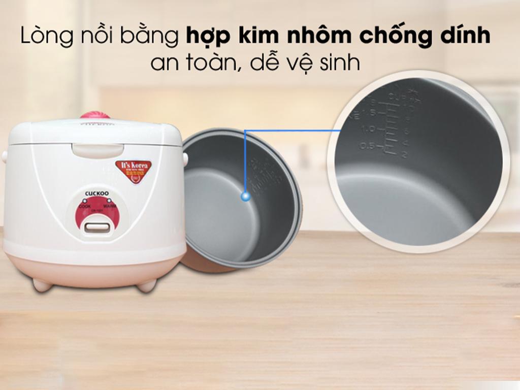 Nồi cơm điện Cuckoo 1.8 lít CR 1055 cũng có lòng nồi làm từ hợp kim nhôm, nhưng được tráng men chống dính, có khả năng truyền nhiệt nhanh, giúp cơm chín đều và ngon hơn. Tuy nhiên, men chống dính có thể bị trầy xước nếu không được bảo quản cẩn thận, làm giảm tuổi thọ của nồi cơm điện.