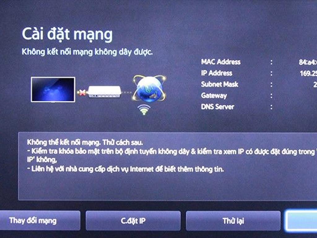 - - DNS hoặc IP sai: Khi cấu hình DNS hoặc IP không đúng, tivi có thể kết nối được với mạng WiFi nhưng không thể truy cập vào internet. Đây là lỗi phổ biến khi người dùng cố gắng cấu hình thủ công mạng trên tivi wifi.