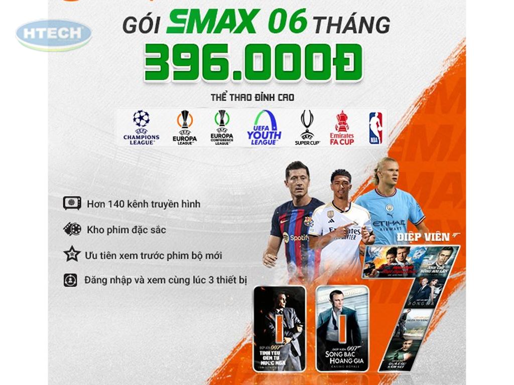 - - Gói cao cấp Smax 180 ngày: Từ 396.000 đồng, bao gồm các nội dung độc quyền như thể thao, phim bom tấn và các kênh truyền hình quốc tế.
