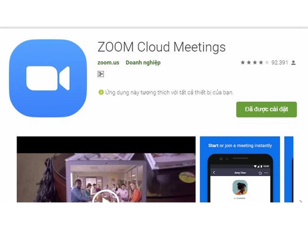 - - Chọn ứng dụng Zoom và nhấn "Cài đặt".