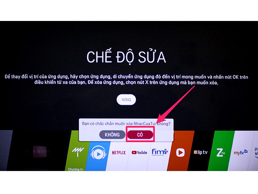 - - Xác nhận hành động để xóa ứng dụng khỏi tivi.