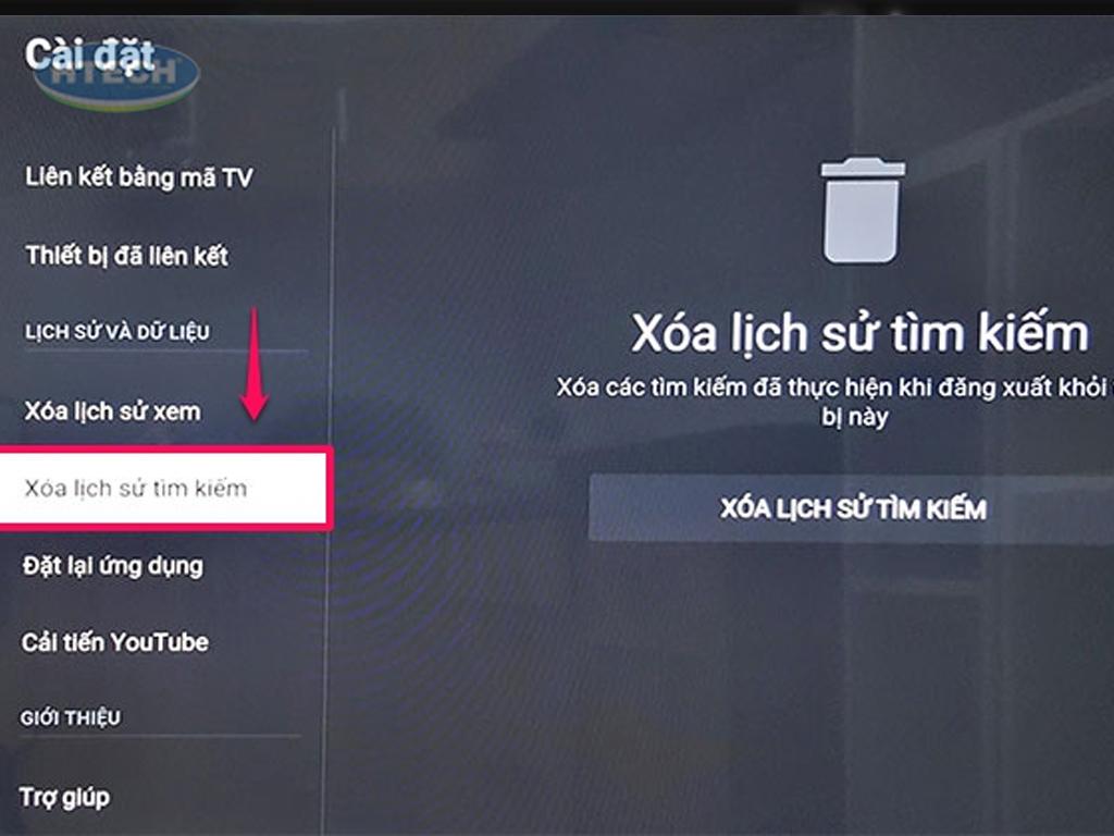 Các bước chi tiết xóa lịch sử Youtube trên tivi đời mới.