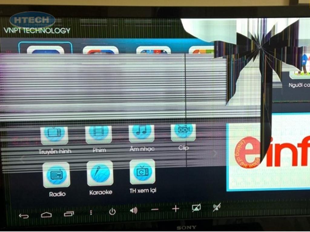- - Hình ảnh bị biến dạng nghiêm trọng: Các dấu hiệu như tivi bị sọc ngang màn hình, màn hình tivi bị sọc, tivi bị hoen màu sau khi bị va đập mạnh.