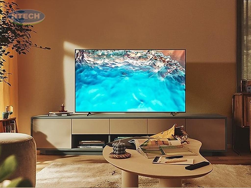 Tivi Samsung 65 inch sở hữu màn hình rộng 65 inch, lý tưởng cho các không gian lớn như phòng khách hay hội trường. Với thiết kế tràn viền, sản phẩm tạo cảm giác hình ảnh vượt ngoài khung, tối ưu hóa không gian hiển thị. Kích thước tivi samsung 65tu8100này cạnh tranh trực tiếp với các sản phẩm cùng phân khúc của tivi Panasonic và Smart tivi Sony, nhưng vượt trội hơn ở yếu tố thị giác nhờ viền siêu mỏng, giúp nội dung trở nên sống động và thu hút hơn.
