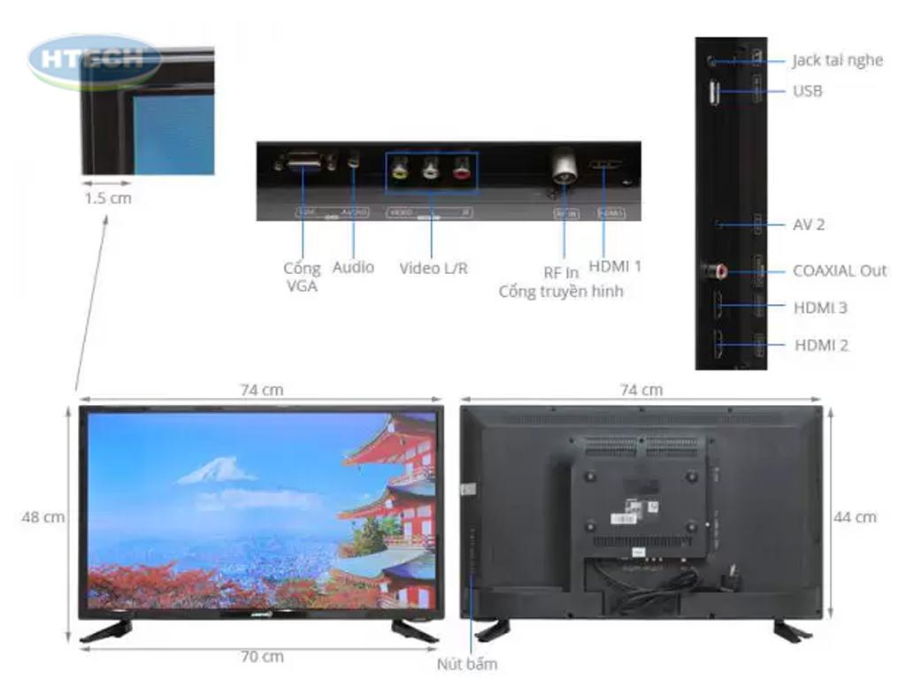 Tivi này có thiết kế đơn giản, tích hợp đầy đủ cổng kết nối, phù hợp để xem phim, nghe nhạc cơ bản. Giá bán của sản phẩm dao động từ 3,4 triệu đồng, cực kỳ cạnh tranh trong phân khúc.