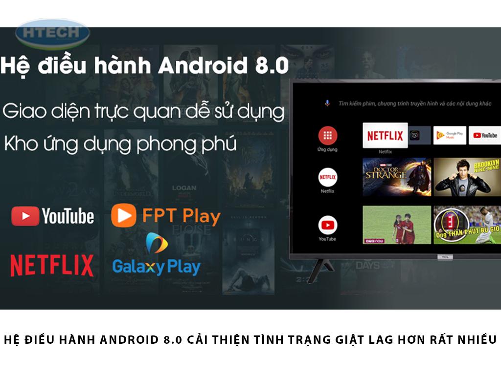 Tivi TCL 43 inch L43S6500 sử dụng hệ điều hành Android 8.0, hỗ trợ nhiều ứng dụng như Netflix, YouTube, và các nền tảng giải trí phổ biến. Hệ điều hành này đã được cải tiến để hạn chế tình trạng giật, lag, và tăng tính ổn định khi chạy đa nhiệm.