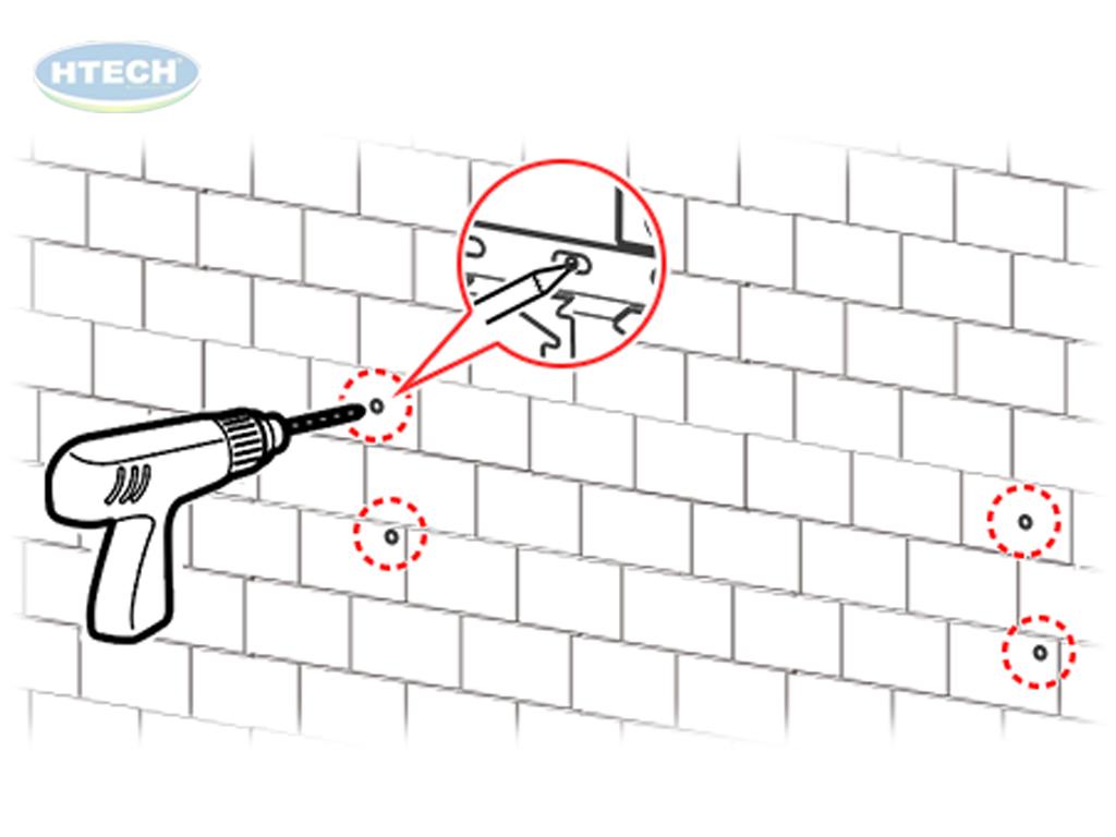 - - Khoan các lỗ theo vị trí đã đánh dấu, sau đó sử dụng vít nở để cố định giá treo lên tường. Đảm bảo giá treo được gắn chặt và không bị lung lay.