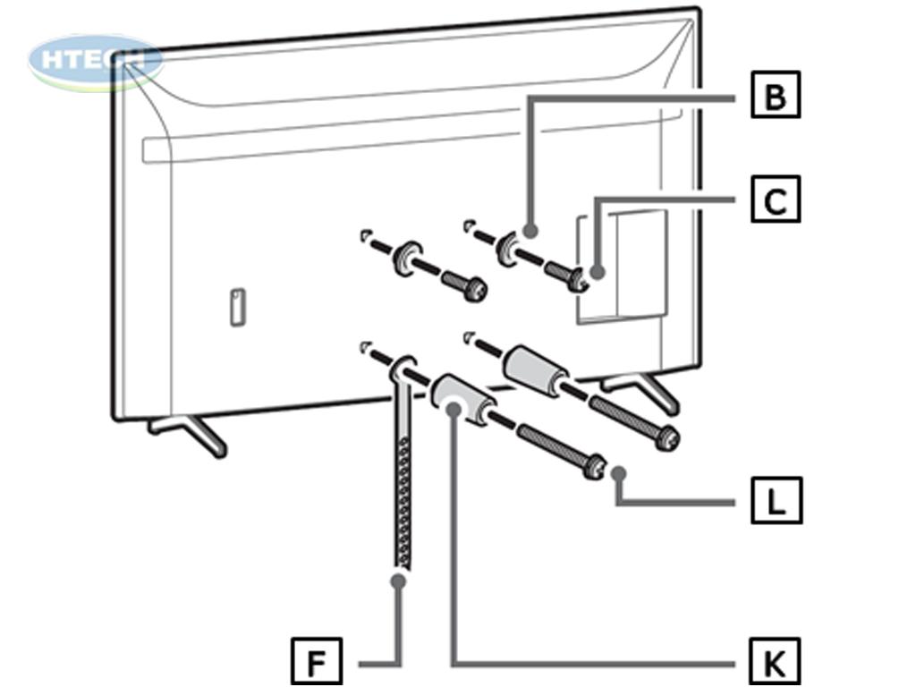 - - Gắn khung giá treo tivi Sony 55 inch vào mặt sau của tivi bằng các vít đi kèm. Kiểm tra xem khung có khớp với giá treo trên tường không.