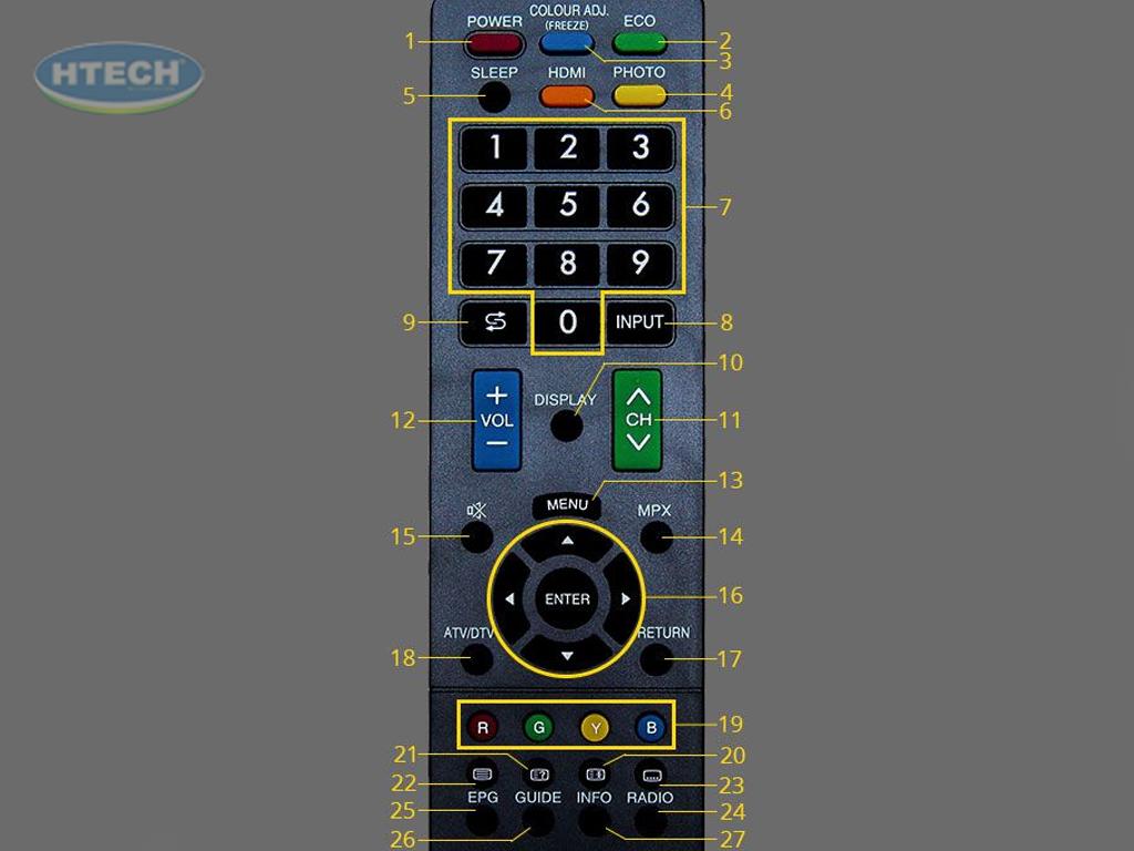 Các nút màu trên remote giúp tùy chỉnh hoặc truy cập nhanh vào các tính năng mở rộng. Cách sử dụng điều khiển tivi sharp aquos như sau: