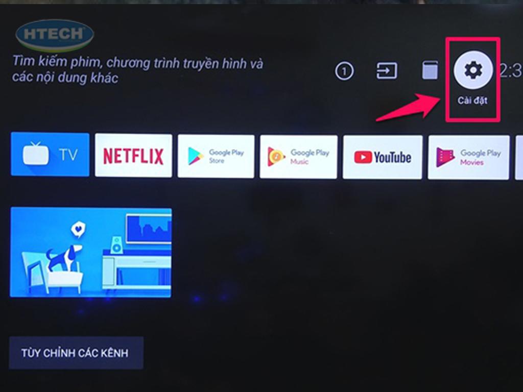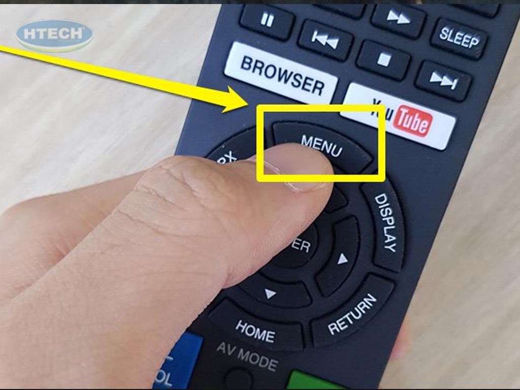 Bước 1: Nhấn nút MENU trên remote để truy cập cài đặt.