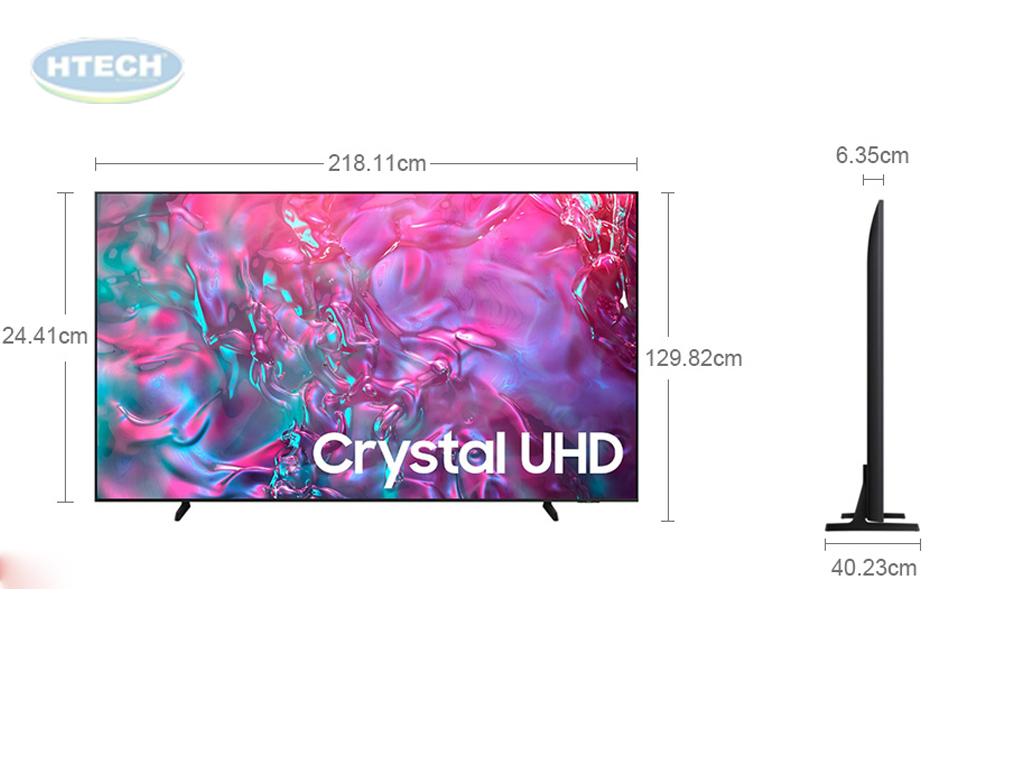 Với màn hình tivi 98 inch, chiều rộng của tivi Samsung đạt khoảng 220 cm, chiều cao khoảng 125 cm, và độ dày thường dưới 5 cm tùy dòng sản phẩm. Đây là kích thước tivi lý tưởng để biến không gian sống thành một trung tâm giải trí, phù hợp với những phòng khách lớn hoặc không gian mở.