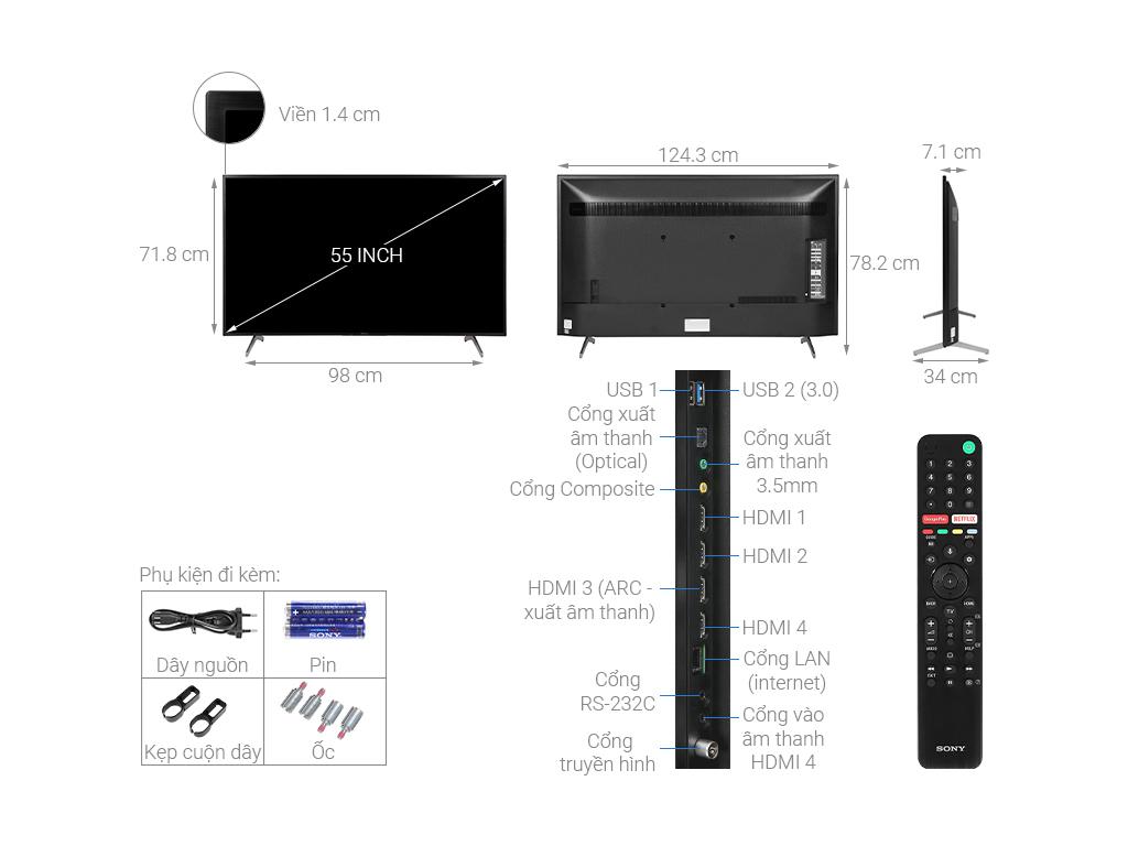 Với kích thước 55 inch, tivi Sony 55 inch KD 55X8000H phù hợp với không gian phòng khách trung bình đến lớn, giúp người dùng có trải nghiệm xem hoàn hảo từ mọi góc độ. kích thước tivi 55 inch này không chỉ tạo cảm giác rộng rãi mà còn tối ưu hoá trải nghiệm hình ảnh 4K sắc nét. Đây cũng là kích thước tivi sony 55 inch phổ biến trong các dòng tivi 4K của tivi Samsung, hay tivi LG, nhưng Sony luôn ghi điểm nhờ vào thiết kế và độ bền vượt trội.