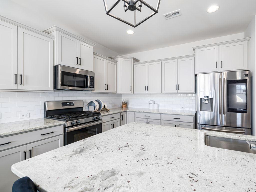 Sử dụng gạch ốp tường trong thiết kế tủ bếp là một cách tuyệt vời để tạo điểm nhấn và mang đến sự phá cách. Gạch có thể có hình dáng, màu sắc và chất liệu đa dạng, giúp phù hợp với phong cách thiết kế của bạn.