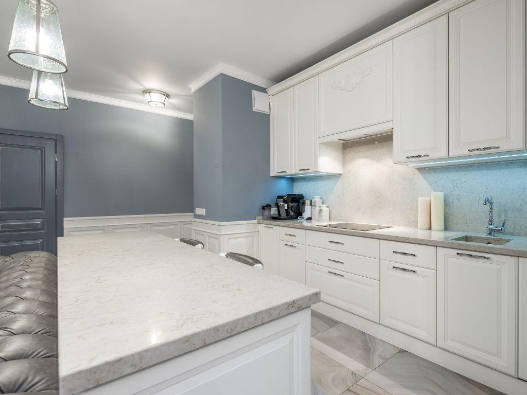 Mẫu tủ bếp tân cổ điển đẹp thường kết hợp sự hòa quyện giữa yếu tố cổ điển và hiện đại, tạo nên không gian bếp sang trọng và độc đáo.