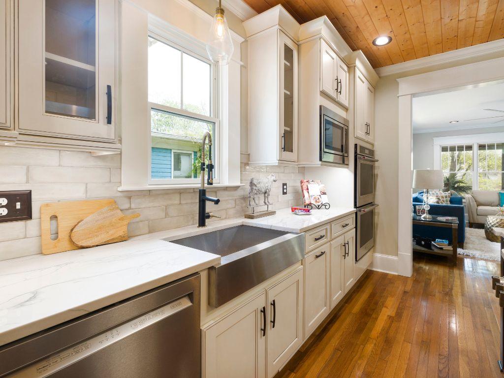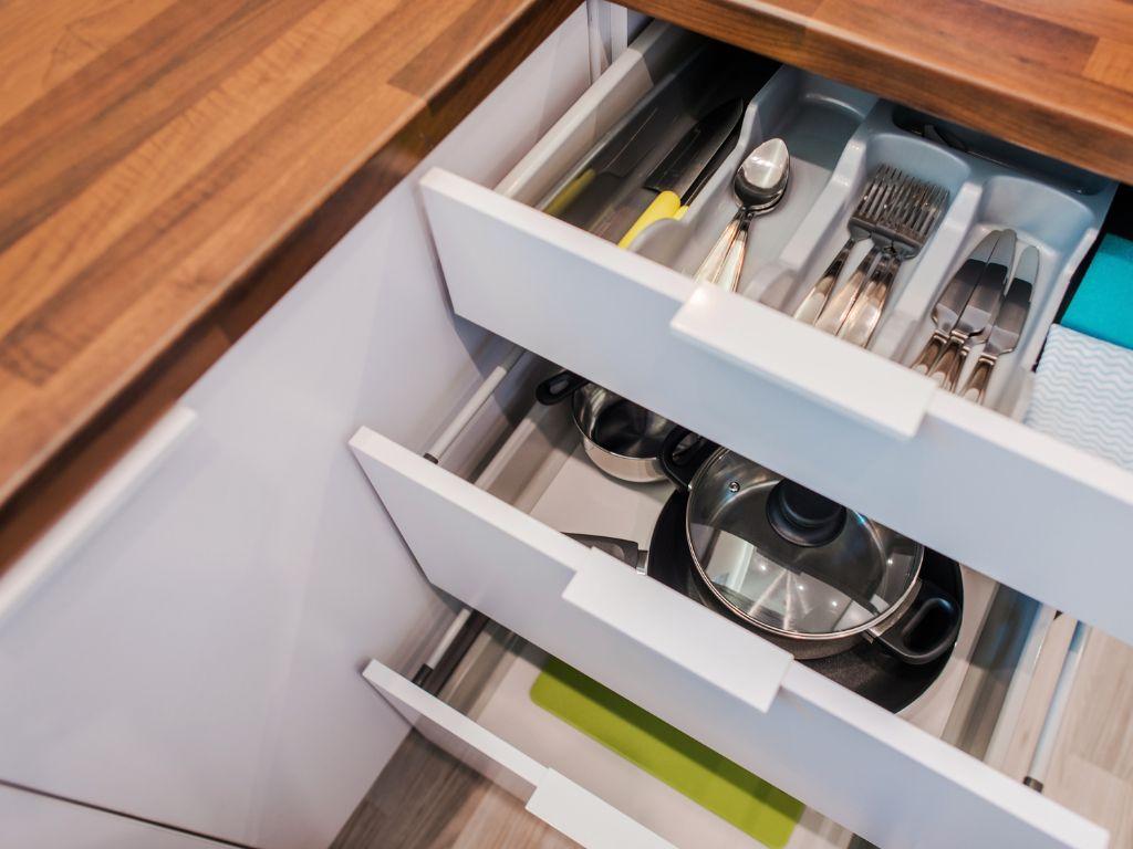 Tủ bếp có bồn rửa chén là một vị trí quan trọng và thường gặp nhiều vấn đề. Để đảm bảo độ bền trong quá trình sử dụng, khoang chậu rửa thường được làm từ chất liệu không thấm nước.