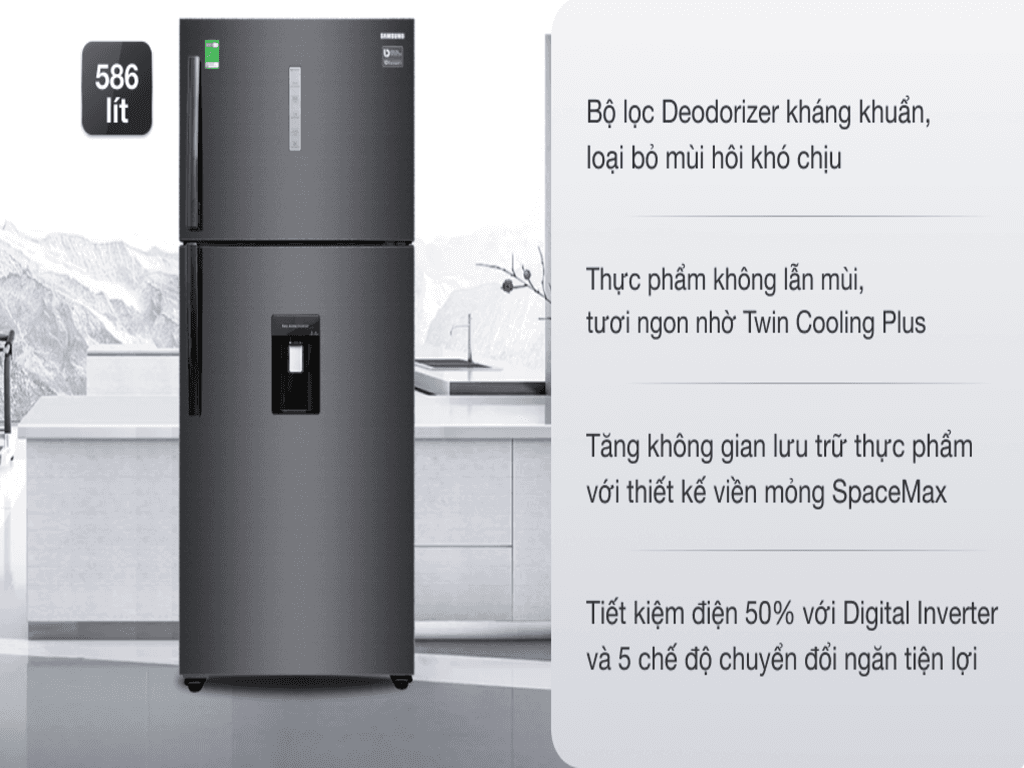 - Thiết kế sang trọng: Tủ lạnh Samsung Twin Cooling Plus 594L có thiết kế đẹp mắt, phù hợp với nhiều không gian bếp khác nhau.