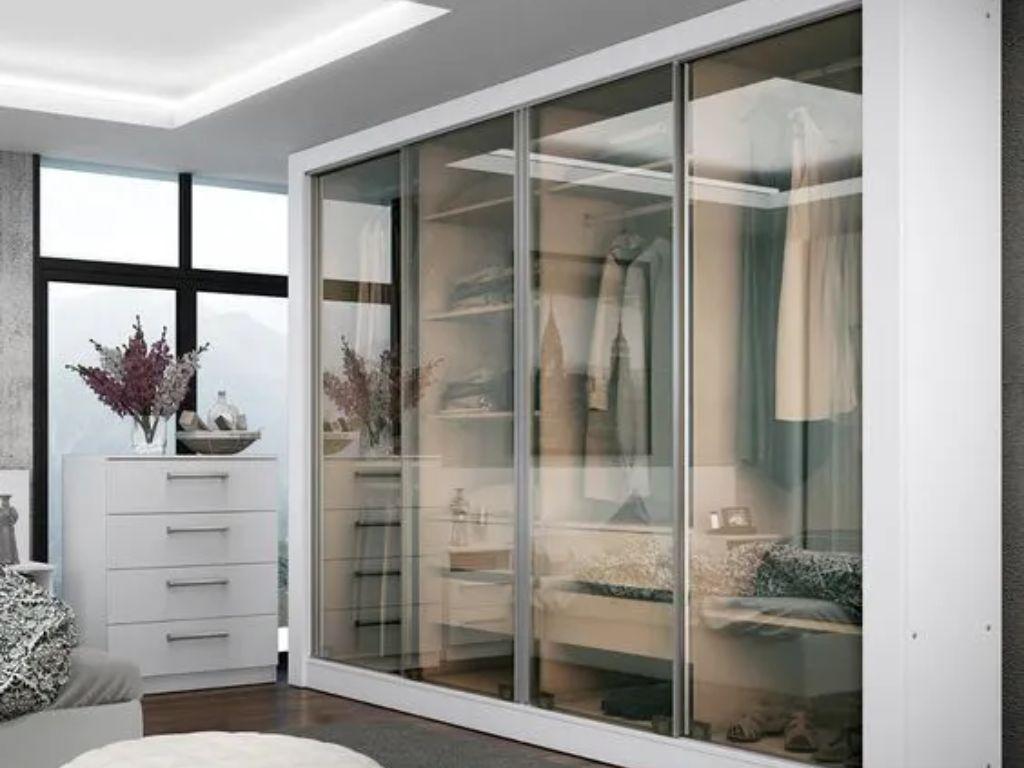 Mẫu tủ quần áo nhôm kính thông dụng tiếp theo là dòng tủ nhôm đựng quần áo 4 cánh và 4 buồng. Đối với những gia đình có số lượng thành viên đông đảo và nhiều đồ đạc cần lưu trữ, đây là một giải pháp hiệu quả để thu gọn và tạo ra không gian gọn gàng theo ý thích.