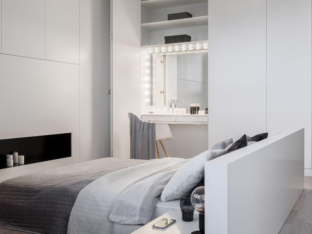 Thiết kế kết hợp tủ quần áo và bàn trang điểm giúp tiết kiệm không gian trong căn phòng, đặc biệt là trong những căn phòng có diện tích hạn chế.