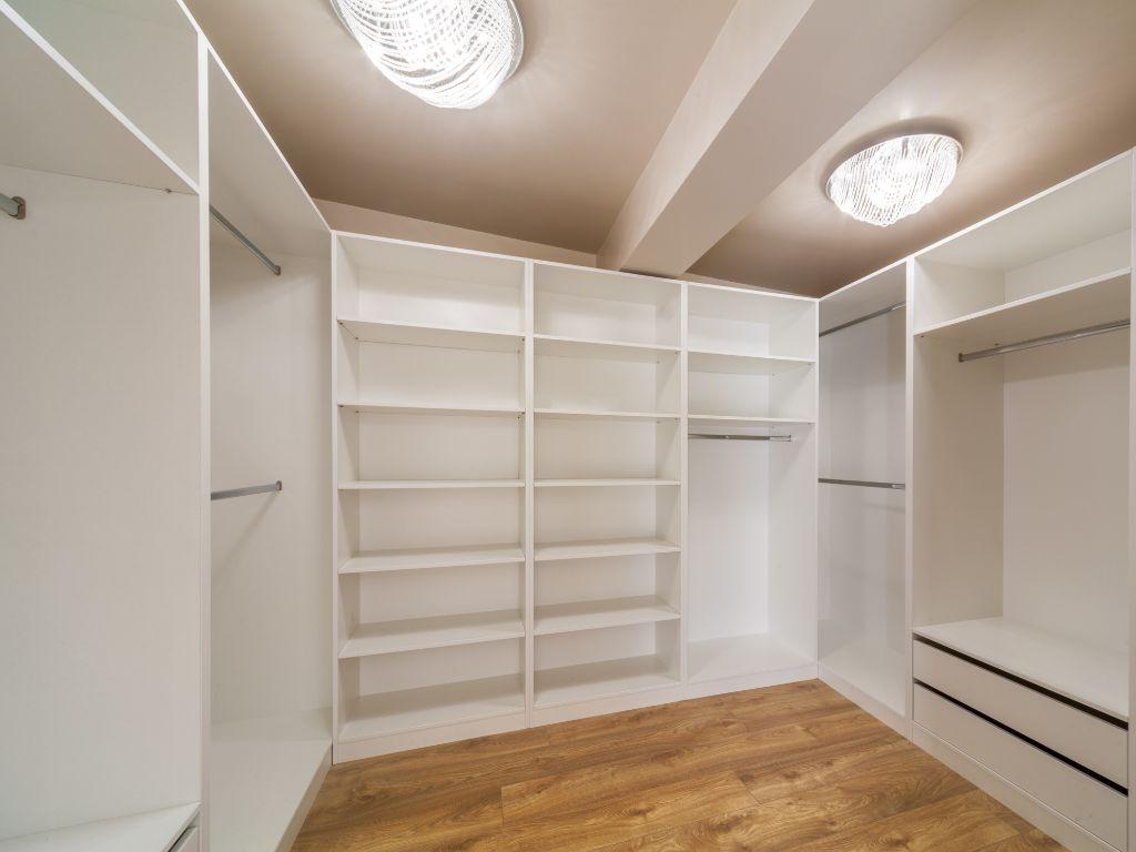 Kết hợp giữa tủ quần áo và bàn trang điểm theo dạng kiểu chữ L, sản phẩm mang đến sự hòa quyện tinh tế giữa chức năng lưu trữ và không gian trang điểm trong phòng ngủ.