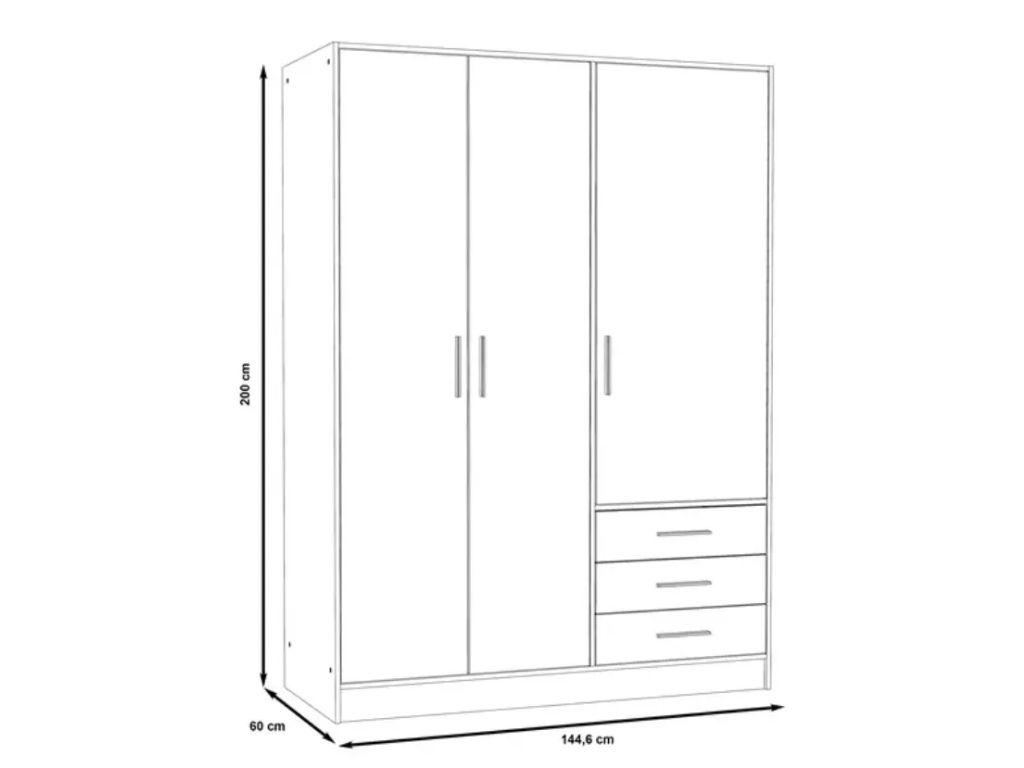 Kích thước tiêu chuẩn của tủ quần áo 3 buồng có thể thay đổi tuỳ theo nhãn hiệu sản xuất, quốc gia và phong cách thiết kế. Dưới đây là những kích thước thông thường được sử dụng:
