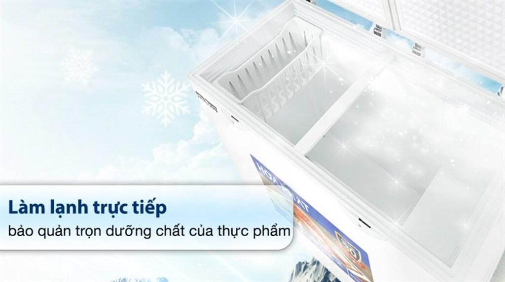 Tủ đông Hòa Phát được hãng tích hợp và ứng dụng công nghệ làm lạnh trực tiếp. Hơi lạnh được thổi trực tiếp thông qua đối lưu gió, giúp khí lạnh nhanh chóng lan rộng khắp ngăn tủ. Nhờ đó thực phẩm sẽ được làm đông nhanh chóng hơn, tăng thời gian lưu trữ và ngăn vi khuẩn phát triển.