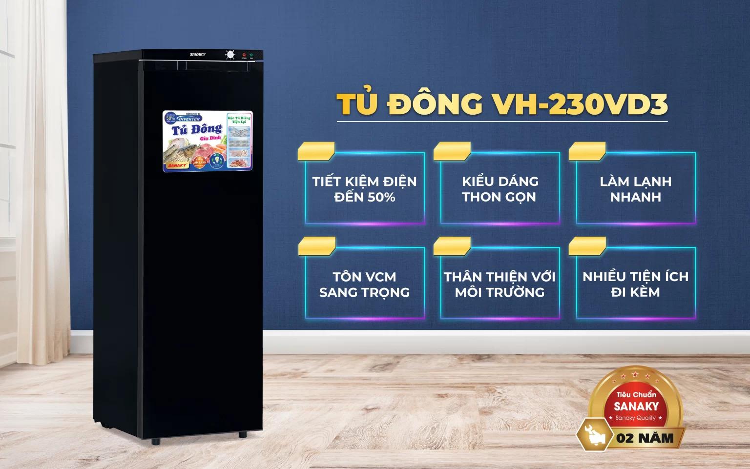 Tổng quan thiết kế tủ đông Sanaky VH-230VD3