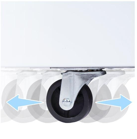 Tủ có trang bị bánh xe thuận tiện cho việc di chuyển tủ vì tủ đông sở hữu trọng lượng lớn, tủ đông gây nhiều khó khăn khi vận chuyển.