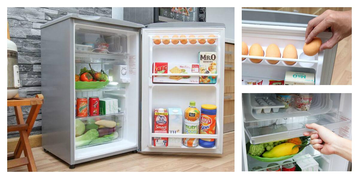 - Bảo quản ít thực phẩm: với dung tích dưới 100 lít, tủ lạnh mini chỉ bảo quản được một lượng thực phẩm nhỏ. Điều này đồng nghĩa với việc tủ chỉ thích hợp dùng trong phòng ngủ, phòng khách sạn hoặc phòng trọ.