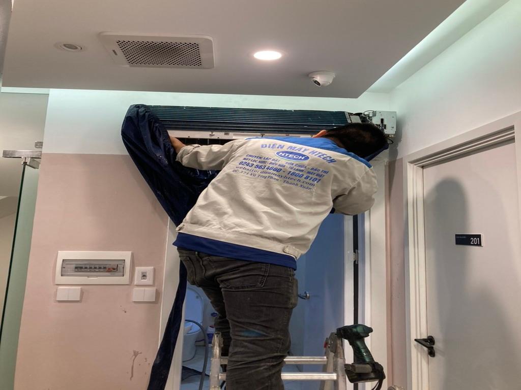 Quy trình vệ sinh điều hòa tại điện máy Htech bao gồm các bước chi tiết sau: