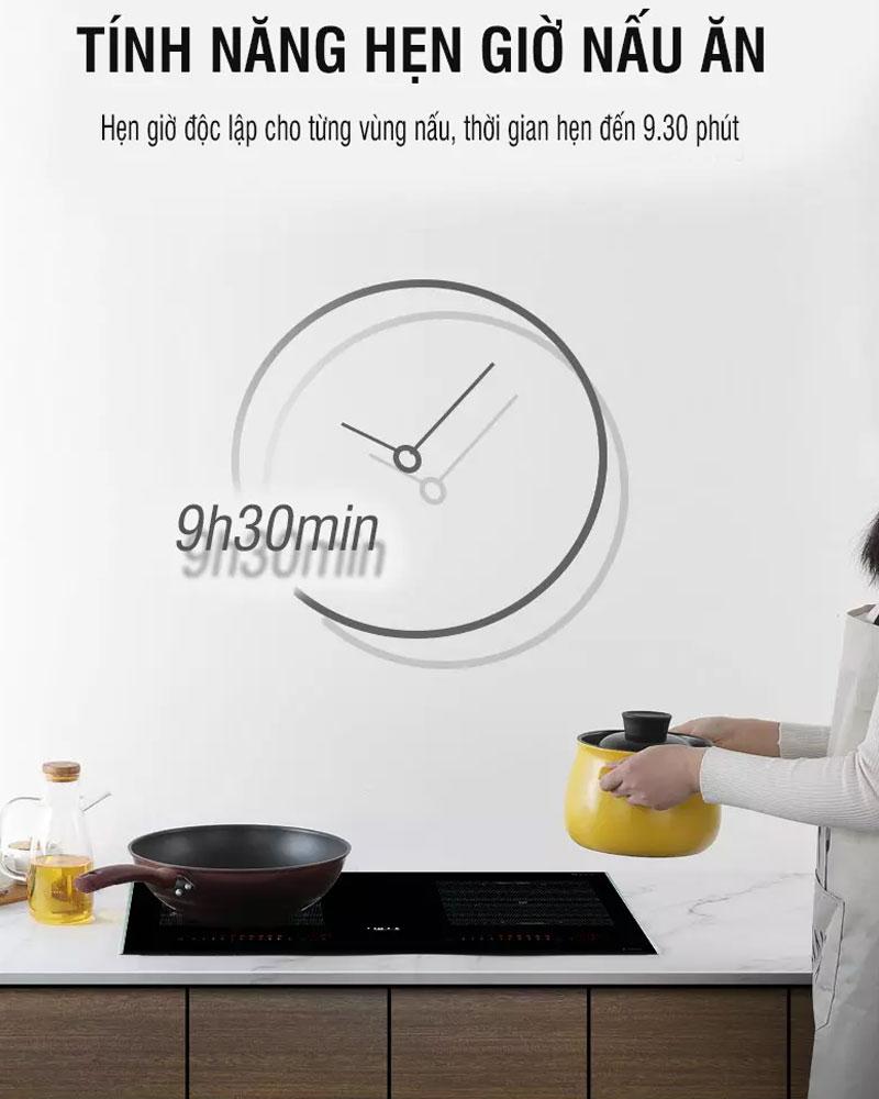 Hẹn giờ độc lập cho từng vùng nấu, thời gian hẹn đến 9.30 phút