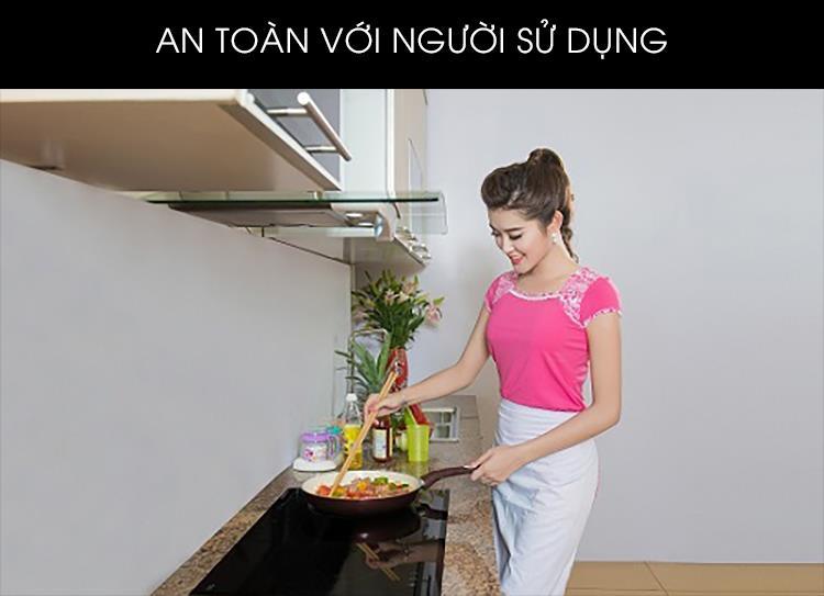 Nếu như bếp gas tiềm ẩn nguy cơ cháy nổ, hay tạo ra mùi khí gas và nấu nướng nóng tay thì bếp từ an toàn tuyệt đối, bếp không sản sinh các khí độc hại như: CO, CO2 chính vì vậy không gây cháy nổ như bếp gas. Tự ngắt khi quên nồi, cạn nước, điện áp quá cao, an toàn với người dùng đặc biệt với người già và trẻ nhỏ.