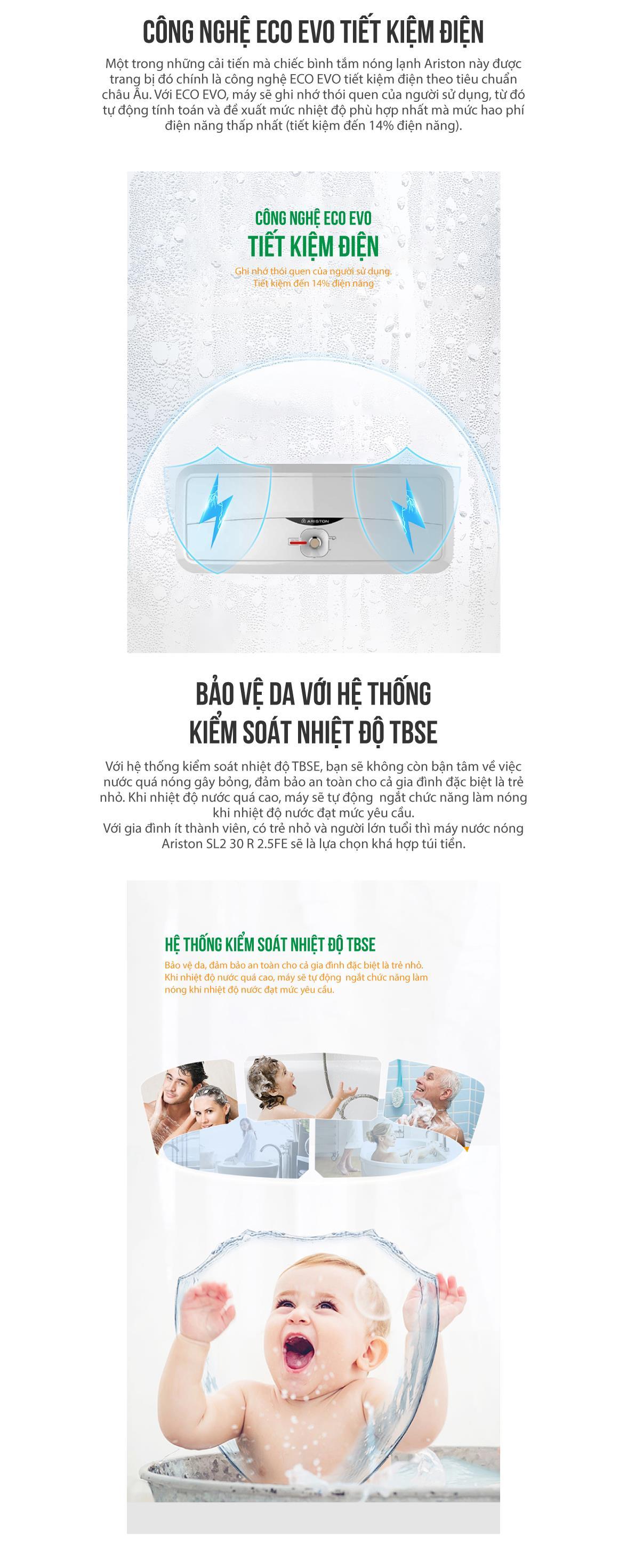 Giới thiệu: Bình nóng lạnh gián tiếp Ariston 30L SL2 30R 2.5 FE-MT