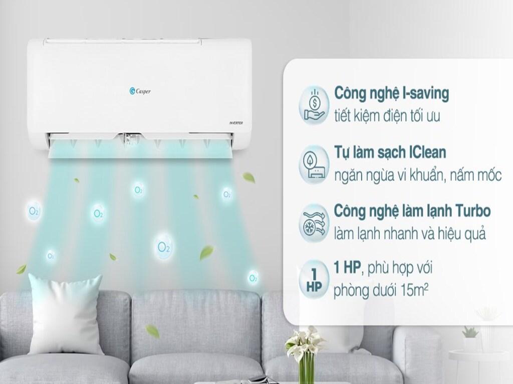 - Tiết kiệm điện năng: Casper áp dụng công nghệ Inverter tiên tiến, giúp tiết kiệm điện năng hiệu quả, giảm chi phí tiền điện hàng tháng cho người dùng.