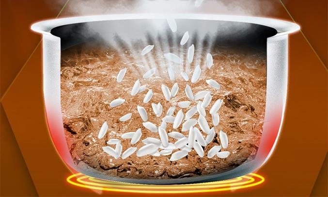 Nồi cơm điện cấu tạo 1 mâm nhiệt lớn đáy nồi nấu cơm chín nhanh tiết kiệm điện năng. Xửng hấp đi kèm hỗ trợ người dùng các món hấp đơn giản như hấp rau củ, làm bánh, nấu xôi…